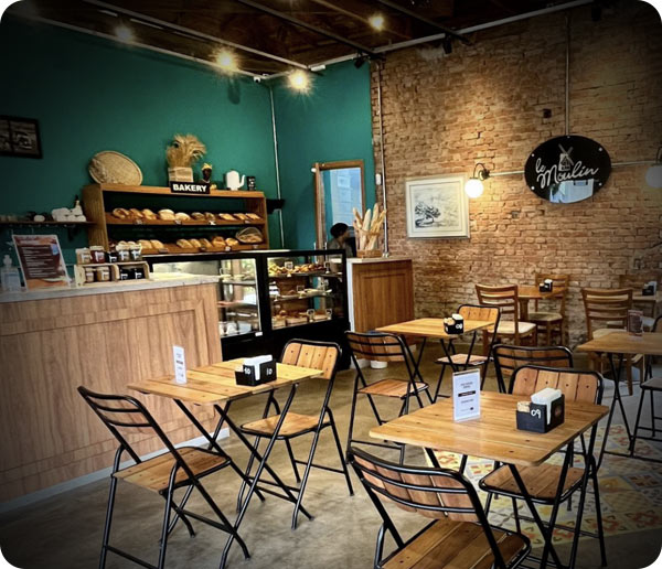 A Le Moulin é uma cafeteria e padaria artesanal de fermentação natural que oferece um ambiente familiar e acolhedor, ideal para todas as idades e ocasiões.